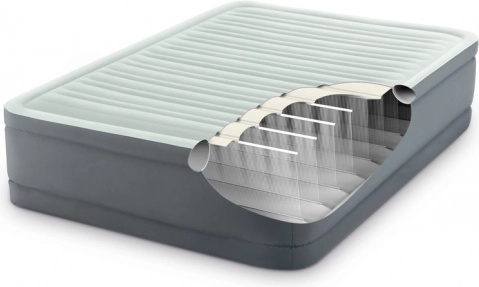 Dank der eingebauten elektrischen Pumpe lässt sich das Bett in wenigen Minuten mühelos auf- und abpumpen. Die kompakten Maße im entlüfteten Zustand ermöglichen einfache Aufbewahrung und Transport – ideal für zu Hause, für Gäste oder die Ferienhütte.