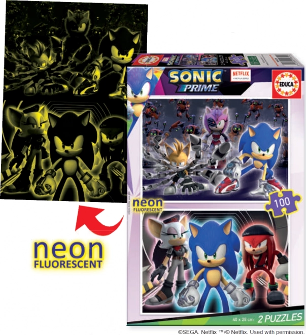 Entdecken Sie die Welt der Magie und des Spaßes mit den fluoreszierenden Sonic Prime Puzzles von Educa. Dieses Set enthält zwei Puzzles mit gleichen Abmessungen und gleicher Anzahl von Teilen: