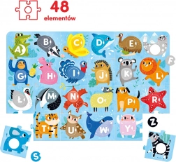 Die Tasche ist riesig, farbenfroh und wunderschön illustriert, was zum Buchstabenerkennen inspiriert und viele verschiedene entwicklungsfördernde Aktivitäten ermöglicht. Das Puzzeln ist nur eine davon. Der beigefügte Leitfaden ist voll von Ideen für lehrreiche Spiele, die auf das Alter und die Fähigkeiten des Kindes abgestimmt sind. Das Puzzle eignet sich hervorragend sowohl für den häuslichen als auch für den Kindergartenbereich.