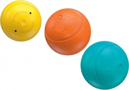 Drei Bälle in unterschiedlichen Größen rollen über bunte Rutschen und landen hinter den passenden Türchen – ideal zum Trainieren von Farben, Sortieren und logischem Denken.