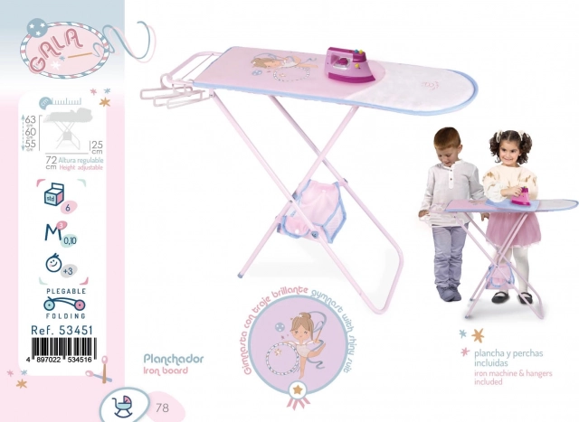 Das klappbare Puppen-Bügelbrett aus der GALA-Kollektion vermittelt Kindern ein authentisches Erlebnis rund um die Pflege von Puppenkleidung. Dank der verstellbaren Höhe von 55 / 60 / 63 cm wächst es mit dem Kind mit und bleibt auch nach mehreren Jahren Spielen komfortabel. Das rosa-weiße Design mit dezenten sportlichen Motiven und ergänzendem Blau wirkt modern und verspielt.