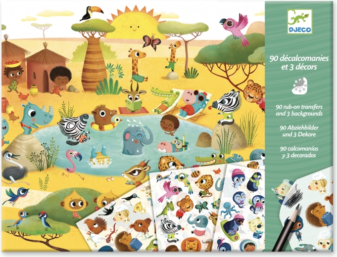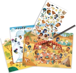 Mit diesem kreativen Set von DJECO erschaffen Kinder im Handumdrehen ihre eigenen bunten Welten: den eisigen Nordpol, die glühend heiße Wüste und die wilde Savanne. Die Übertragung der Motive ist ganz einfach – legen Sie das Bild auf den Hintergrund und fahren Sie sanft mit dem Stift darüber. Das Motiv wird originalgetreu genau dort abgebildet, wo Sie es haben möchten.