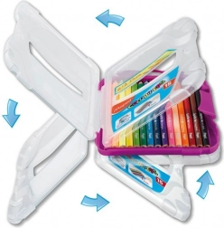 Das clevere Kunststoffetui mit Hebelmechanismus erleichtert die Organisation und die schnelle Farbauswahl. Ideal für die Schule, AGs und zu Hause – alles Nötige stets griffbereit.