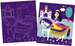 Dieses elegante Kratzkarten-Set verwandelt jeden Strich mit dem Holz-Stylus in ein bezauberndes Bild mit Prinzessinnen – vom Ball über den Ausritt bis hin zur Palasttreppe. Kinder kratzen die obere Schicht der Karten ab und enthüllen leuchtende Farben und funkelnde goldene Details, die vor ihren Augen zum Leben erwachen.