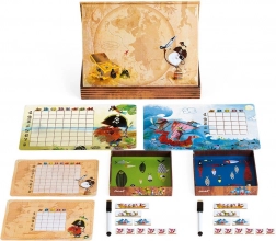 Begeben Sie sich auf eine Piratenexpedition und versuchen Sie herauszufinden, wo der Gegner seine Schiffe versteckt hat. Das magnetische Piratenschiff-Spiel von JANOD bringt das klassische Prinzip der Seeschlacht in einer modernen und robusten Ausführung. Dank der magnetischen Elemente bleibt alles an seinem Platz – ideal für zu Hause und unterwegs.