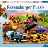 Puzzle Baustelle von Ravensburger ist ideal für Kinder ab 4 Jahren, die sich für Baufahrzeuge interessieren. Es zeigt eine lebhafte Szene mit verschiedenen Baustellenfahrzeugen wie Walzen und Bulldozern.