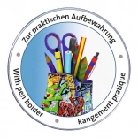 Das fertige Modell funktioniert als praktischer Stiftehalter für Bleistifte, Buntstifte, Schere oder Marker und ist zugleich eine auffällige Dekoration für den Schreibtisch.