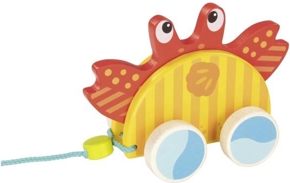 Buntes Ziehtierchen ist ein beliebtes Spielzeug jedes Kindes. Der sich bewegende Krabbe auf Rädern ist der ideale Begleiter für die ersten Ausflüge der Kinder.