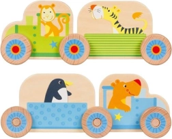 Der Holzbausatz Mein kleiner Zug ist eine perfekte Möglichkeit, Ihr Kind mit der Magie von Baukästen bekannt zu machen. Er besteht aus 16 Teilen, einschließlich zwei Lokomotiven und zwei Waggons, die Tiere auf einen Ausflug mitnehmen.