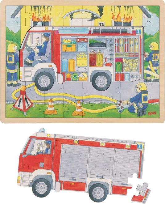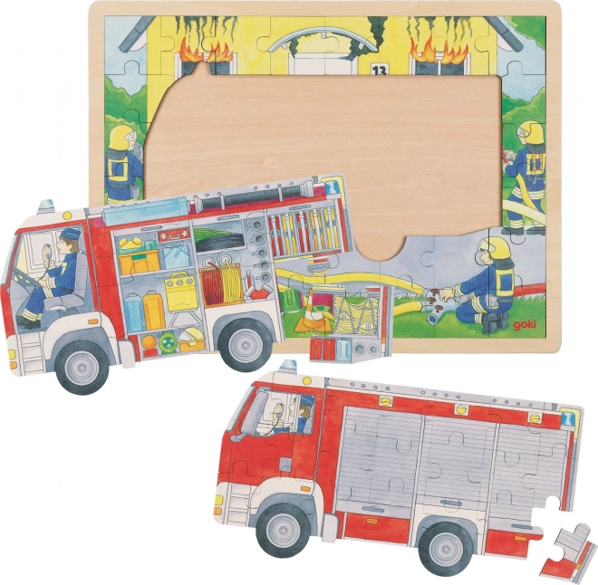 Mehrschichtiges Holzpuzzle Feuerwehr im Einsatz 59 Teile GOKI