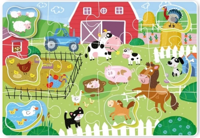 Puzzle Farm 18 Teile sind das ideale pädagogische Spielzeug für die kleinsten Kinder. Sie fördern Konzentration, Geduld und entwickeln manuelle Fähigkeiten, was sie zu einer großartigen Möglichkeit macht, die Freizeit zu verbringen.
