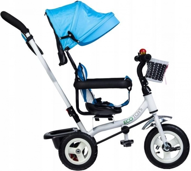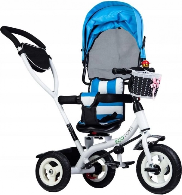 Dieses Dreirad der Marke ECOTOYS wurde entwickelt, um Ihrem Kind beim Spielen und auf Spaziergängen Sicherheit und Komfort zu bieten. Eine weiche Rückenlehne zusammen mit Sicherheitsgurten und Schutzbügeln sorgt dafür, dass Ihr Kind sicher an seinem Platz bleibt. Das klappbare Verdeck schützt vor Witterungseinflüssen, und der drehbare Sitz erleichtert das Ein- und Aussteigen.