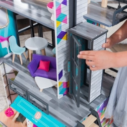 Vierstöckiges Stadt-Puppenhaus mit realistischen Details, Dachpool und beweglichem Aufzug bietet Kindern stundenlangen kreativen Spielspaß. Es verfügt über 6 Spielszenarien, 26 Möbelteile, Licht- und Soundeffekte sowie beidseitiges Spiel dank 360°-Zugang. Die hochwertige Ausführung aus Holzmaterial von KIDKRAFT ist ideal für Puppen bis 30 cm.