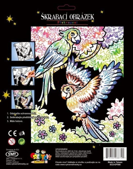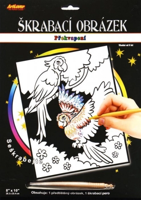 Kratzbild mit Überraschung Zwei Papageien 20x25 cm