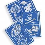 Entdecken Sie das abenteuerliche SNAZAROO-Schablonenset mit Motiven von Piraten, Indianern und dem Weltraum, das Ihr Facepainting auf ein neues Niveau hebt. Die Schablonen haben einen selbstklebenden Rücken, sodass sie sicher an Ort und Stelle bleiben, und ihr flexibles Material passt sich den Konturen von Gesicht und Händen an.