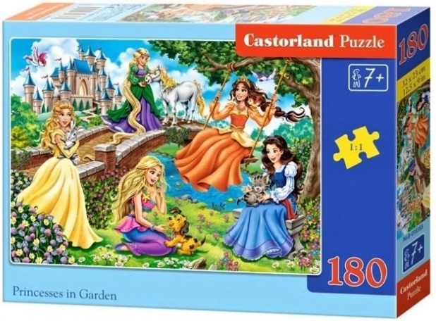 Farbenfrohes Kinderpuzzle mit dem Motiv Prinzessinnen im Garten bietet 180 Teile und ergibt zusammengesetzt ein Bild von 32 × 23 cm. Eine tolle Wahl zur Förderung von Fantasie, Konzentration und Geduld bei Kindern im Alter von etwa 6–8 Jahren.
