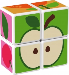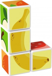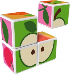 Kunststoffwürfel mit Fruchtmotiven. Die Würfel sind magnetisch, sodass Kinder daraus dreidimensionale Objekte bauen können. Kinder können einen Apfel, eine Erdbeere, Weintrauben, Kirschen, eine Banane, einen Pfirsich sowie einen Schornstein oder einen Zaun für Tiere bauen. Erweitern Sie die Spielmöglichkeiten durch den Kauf weiterer GEOMAG Magicube Sets. Die Magicube Kinderwürfel fördern Koordination und Motorik, entwickeln Fantasie und logisches Denken und motivieren zum Erzählen von Geschichten. Die Packung enthält 4 magnetische Würfel und 6 Karten mit Bauvorschlägen für Tiere. Hergestellt in der Schweiz. Hinweisvideo: Magnetwürfel Geomag Magicube.
