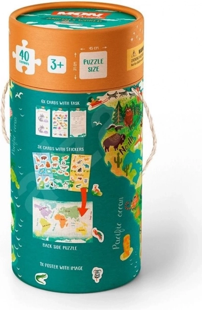 Entdecken Sie ein spielerisches Set für Kinder ab 3 Jahren, das zweiseitige Puzzle mit 40 Teilen, Aufgabenkarten, Poster und Aufkleber kombiniert. Die Geschenk-Tube bietet stundenlangen Spaß und fördert zugleich die Feinmotorik, das logische Denken und das Kennenlernen von Tieren aus aller Welt.