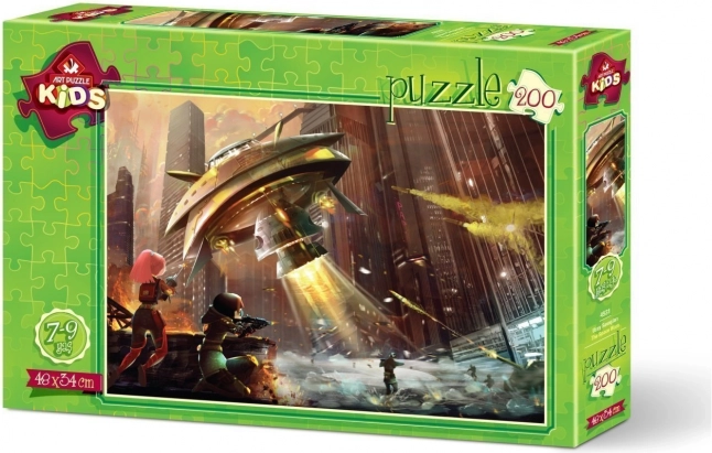 Tauchen Sie in die Welt der Sci-Fi ein und setzen Sie ein Bild mit dem Motiv von Weltraumgefechten zusammen. Dank der 200 Teile ist es eine angenehme Herausforderung für Kinder und Erwachsene, die Sie in kurzer Zeit bewältigen. Das fertige Bild hat ein Maß von ca. 48 × 34 cm und eignet sich daher auch hervorragend zum Ausstellen.