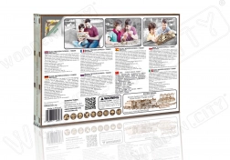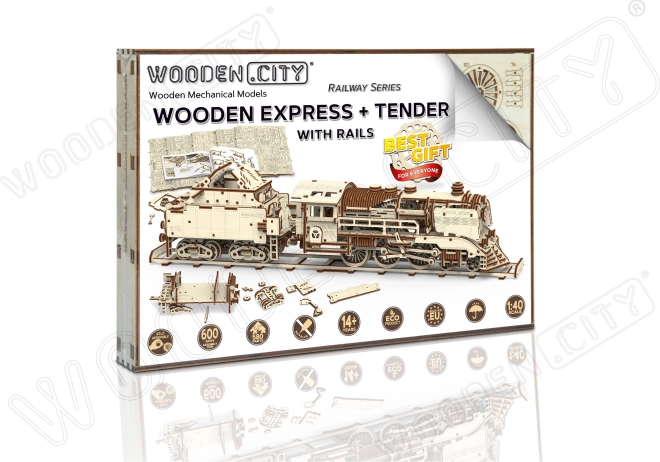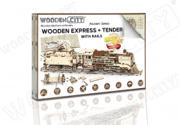 Bauen Sie einen realistischen hölzernen Express mit Tender und Gleisen und reisen Sie zurück in die goldene Ära der Dampfmaschinen. Das Modell ist mit einem spezialen Startschlüssel, öffnenden Feuerraumtüren, Treib- bzw. Antriebsrädern und einer Kupplung zwischen Lokomotive und Tender ausgestattet. Nach dem Zusammenbau fährt die Lokomotive vorwärts, rückwärts und im Kreis – so genießen Sie nicht nur den Bau, sondern auch die Fahrt.