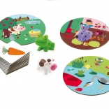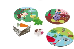 Das Spiel Djeco Kleine Assoziation ist die ideale Wahl für die ersten Brettspiele. Kinder ordnen Tiere der Umgebung oder Gegenständen auf den Kärtchen zu – zum Beispiel den Hasen zur Karotte, den Fisch zum Teich oder den Marienkäfer zur Wiese. Das einfache Prinzip unterstützt schnelle Entscheidungen und fördert ganz natürlich das Verstehen der Welt um uns herum.