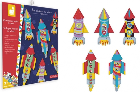 Das Set enthält 10 Bögen zum Falten von bis zu 5 originellen Raketen mit farbenfrohen Mustern, die sofort ins Auge fallen.