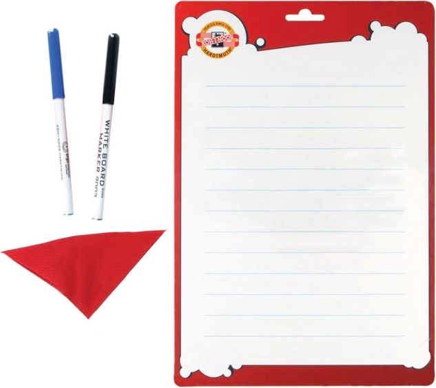 Entdecken Sie die abwischbare Tafel von Koh-i-Noor, die für effektives Schreibtraining entwickelt wurde. Durch das vordruckte Linienmuster ist sie ideal für das Erlernen der richtigen Proportionen von Schreib- und Druckbuchstaben. Das Set enthält zwei Marker in Schwarz und Blau sowie ein Tuch zum einfachen Entfernen der Tinte.
