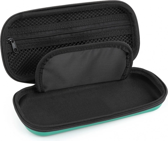Im Inneren des Etuis finden Sie ein geräumiges Hauptfach, eine Netzinnentasche für Kleinigkeiten und unter der Klappe freien Raum für das schnelle Verstauen der am häufigsten benutzten Utensilien. Hochwertige Reißverschlüsse sorgen für ein sanftes Öffnen und eine lange Lebensdauer.