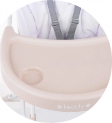 Der Hochstuhl Teddy von Chipolino kombiniert Sicherheit, Komfort und Praktikabilität. Dank des breiten Sitzes und der verstellbaren Fußstütze fühlt sich Ihr Kind wohl, während der 5-Punkt-Gurt beim Essen Stabilität bietet. Das abnehmbare und geräumige Tablett erleichtert sowohl das Servieren als auch die Pflege.