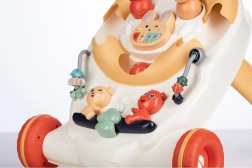 Der Laufwagen bietet clevere Funktionen für verschiedene Entwicklungsphasen: zwei Höheneinstellungen wachsen mit dem Kind mit, die Räder verfügen über 2 Geschwindigkeiten für ein sichereres Training und abnehmbare Elemente wie das Häschen-Klavier und die Bälle können auch separat außerhalb des Laufwagens genutzt werden.