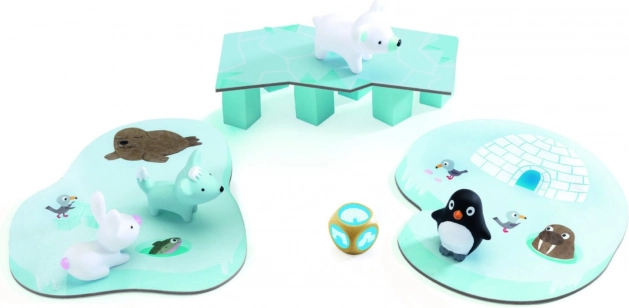 Schaffen es die Tiere sicher in ihr Iglu? Das kooperative Spiel Djeco Kleine Zusammenarbeit für 2–4 Spieler ab ca. 3 Jahren fördert Feinmotorik, Teamarbeit und Strategie auf spielerische Weise. Gemeinsam helfen die Kinder dem Pinguin, Eisbären, Polarfuchs und dem weißen Häschen, das Eis zu überqueren, das jederzeit einbrechen kann – gewinnt, gewinnt das ganze Team!
