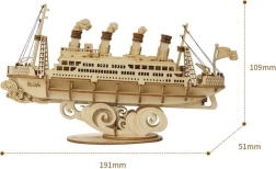 Dieses einzigartige Holz 3D Puzzle Modell eines Ozeandampfers ermöglicht es Ihnen, den Zauber der Vergangenheit zu erleben. Ideal für diejenigen, die eine unterhaltsame Aktivität suchen, die in einem prächtigen Schaustück mündet:
