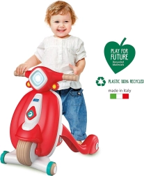 Gönnen Sie Ihrem kleinen Fahrer einen sicheren Start mit dem Lauflernwagen und Rutschfahrzeug CLEMENTONI Baby Scooter Vespa. Dank der stabilen Griffe, der breiten Räder und der leichten Konstruktion fördert es die Entwicklung der Grobmotorik, der Bewegungskoordination und des Gleichgewichts. Das fröhliche Design in Rot motiviert zu aktivem Spielen zu Hause und auf glatten Außenflächen.