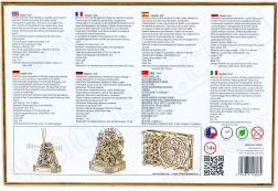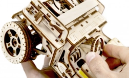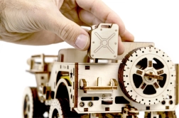 Jedes Teil des Modells, das etwa 27,9 x 15,1 x 14,8 cm misst, ist präzise mit einem Laser ausgeschnitten, um eine exakte und reibungslose Montage zu gewährleisten. Abschließend bereiten Sie Wachs zur Sicherstellung des reibungslosen Betriebs der Zahnräder und Achsen vor. Der Zusammenbau ist mit einem Abbrechmesser, einer Schere, Schleifpapier und einer Kerze abzuschließen (Ausstattung nicht im Lieferumfang enthalten).