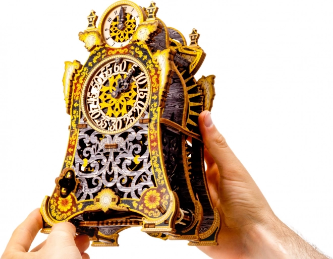 Das Modell besteht aus umweltfreundlichem Birkenholz-Sperrholz und wird ohne Klebstoff oder Werkzeug zusammengebaut. Beim Aufbau lernen Sie die Prinzipien von Übersetzungen, Gummimotoren und dem Lauf eines Uhrenmechanismus aus nächster Nähe kennen.