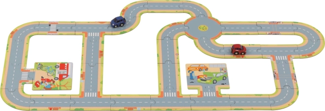 Bauen Sie eine eigene Stadt oder einen Rennkurs. Diese Boden-Autorennbahn von GOKI bietet maximale Variabilität – Kinder können einfache Strecken für ruhige Fahrten ebenso gestalten wie anspruchsvollere Rennkurse mit Kurven, Kreuzungen und Parkflächen. Dank robuster Teile und durchdachter Verarbeitung lässt sich die Bahn leicht auf- und abbauen.