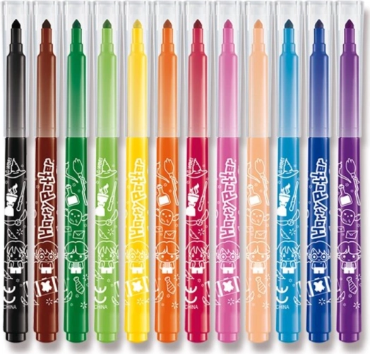 Set mit 12 farbigen Filzstiften mit leicht auswaschbarer und abwischbarer Tinte und attraktiven Harry-Potter-Motiven.