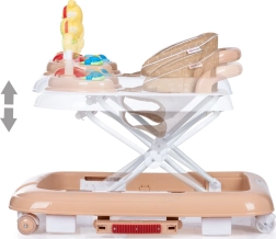 Das interaktive Panel mit bunten Spielzeugen und Musikmodul unterstützt die Entwicklung der Sinne und der Feinmotorik. Der Sitz ist in 3 Höhen verstellbar, die Vorderräder drehen sich 360° für einfaches Manövrieren, und die gesamte Lauflernhilfe lässt sich leicht zusammenklappen und verstauen.