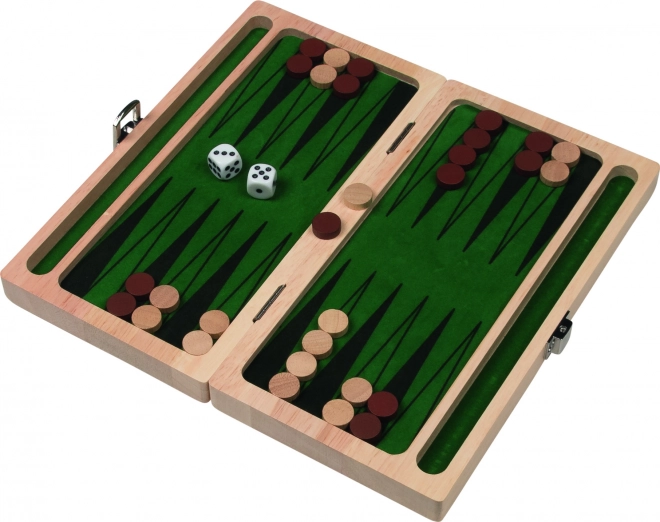 Im Set finden Sie zwei Sätze Holz-Spielsteine und zwei Würfel – alles, was Sie für den Start einer Backgammon-Partie benötigen.