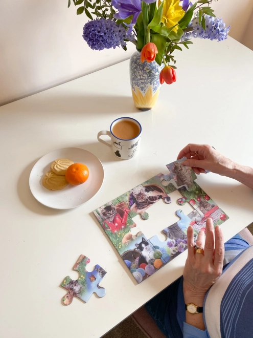 Die Kollektion „Wir puzzeln zusammen“ wurde entwickelt, um Menschen mit eingeschränkter Feinmotorik oder Sehbeeinträchtigungen eine unterhaltsame Tätigkeit zu bieten, die sie allein oder mit einer nahestehenden Person genießen können. Im Set ist eine Vorlage des zu legenden Motivs enthalten.