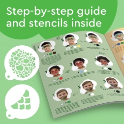 Das Set enthält 8 hochwertige Farben, Schablonen zur einfachen Motivgestaltung, Schwämme, Pinsel und eine bebilderte Anleitung für Anfänger und erfahrene Benutzer. Einfach mit Wasser und Seife abwaschbar, was eine leichte Entfernung garantiert.
