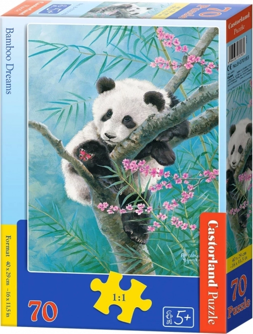 Buntes Kinderpuzzle mit dem Motiv Bamboo Dreams enthält 70 Teile und ergibt zusammengesetzt ein Bild mit den Maßen 40 × 29 cm. Die hochwertige Verarbeitung und satten Farben fördern Konzentration, Geduld und die Entfaltung der Fantasie bei den Kleinsten.