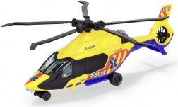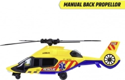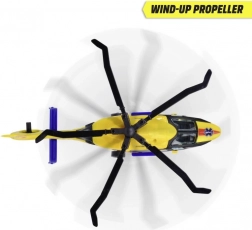 Der Hubschrauber kann sich mit authentischen Details rühmen, wie den Aufschriften 'RESCUE' und '112', sich drehenden Rotoren und vier Rädern für eine einfache Bewegung.