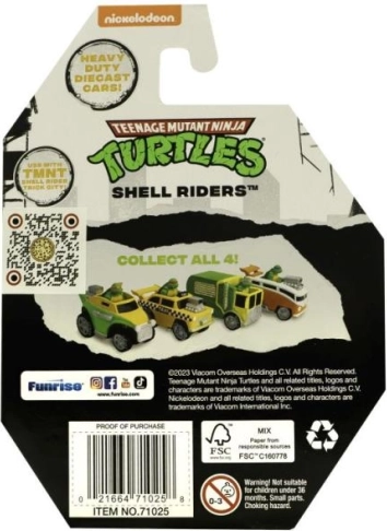 Jedes Auto enthält eine Figur einer der Ninja Turtles, was die Spannung der beliebten TV-Serie ins Spiel bringt.