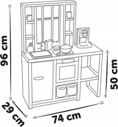 Das Kochfeld, der Backofen mit Sichtfenster, die Spüle und der Kühlschrank ermöglichen Kindern, echte Tätigkeiten nachzuahmen, Knöpfe zu drehen und die Freude am Kochen zu entdecken.