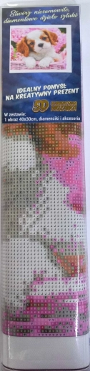 Diamantmalerei Welpe im rosa Körbchen 30 × 40 cm