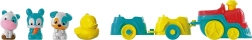 Dieses bunte und unterhaltsame Zugset verwandelt das Spiel der Kinder in ein Abenteuer auf dem Bauernhof. Wenn der Zug vorbeifährt, erwacht der Bauernhof zum Leben: Die Kranausleger heben sich, die Mühle beginnt sich zu drehen und die Tiere spielen ihre charakteristischen Geräusche ab. Indem das gelbe Tor schließt, beginnt das Entenküken um den Teich zu „schwimmen“ und das Karussell dreht sich. Eine tolle Möglichkeit, die Hand-Augen-Koordination zu fördern und die kindliche Fantasie zu beflügeln.