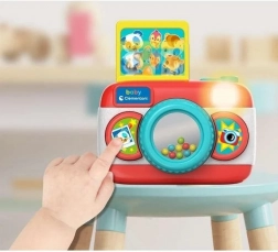 Die spezielle Mischung aus Klang- und Lichteffekten zusammen mit einem kleinen Spiegel und bunten Kügelchen im Objektiv regt die Vorstellungskraft des Kindes und das spielerische interagieren an. Beim Drücken des Auslösers erscheinen Tierbilder, die das Erkennen der Welt erweitern.