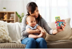 Das Objektiv enthält kleine bunte Perlen und einen Spiegel, die das Spielen und die sensorische Stimulation anregen.