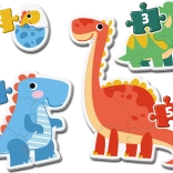 Kinder ab 2 Jahren können das Zusammensetzen der ersten Puzzle mit Dinosaurier-Thema genießen. Jedes Puzzle enthält eine unterschiedliche Anzahl von Teilen - 2, 3, 4 und 5, was eine schrittweise Verbesserung und den Erwerb neuer Fähigkeiten ermöglicht.